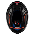 • Tambien destacamos su eficiente sistema de ventilación con entradas de aire frontales (una debajo de la pantalla, dos en la partes superior del casco y dos pequeñas rejillas debajo de la barbilla) y un gran alerón extractor de aire en la parte trasera. Además, cuenta con canalizaciones para una óptima circulación del aire en el interior del casco.
