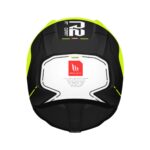 • Tambien destacamos su eficiente sistema de ventilación con entradas de aire frontales (una debajo de la pantalla, dos en la partes superior del casco y dos pequeñas rejillas debajo de la barbilla) y un gran alerón extractor de aire en la parte trasera. Además, cuenta con canalizaciones para una óptima circulación del aire en el interior del casco.